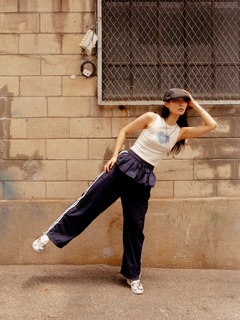 Sneaker style flats with ribbon accents. Adjustable front laces provide fit versatility.