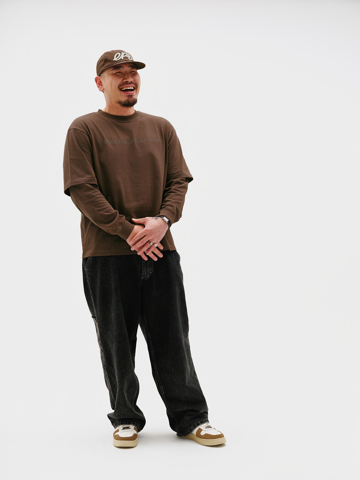 Studded Logo Layered Long Sleeve (Brown)